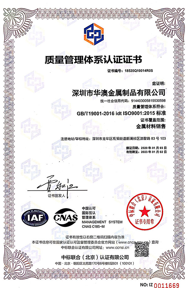 深圳市華澳金屬制品有限公司成立于2011年,擁有20多人的研發團隊,10+年專注金屬原材料生產經驗,主打產品系列包含:鋁合金系列、不銹鋼系列、鈦合金系列,并通過ISO質量管理體系認證9001:2015,產品符合“SGS"、"RoHS"環保認證。